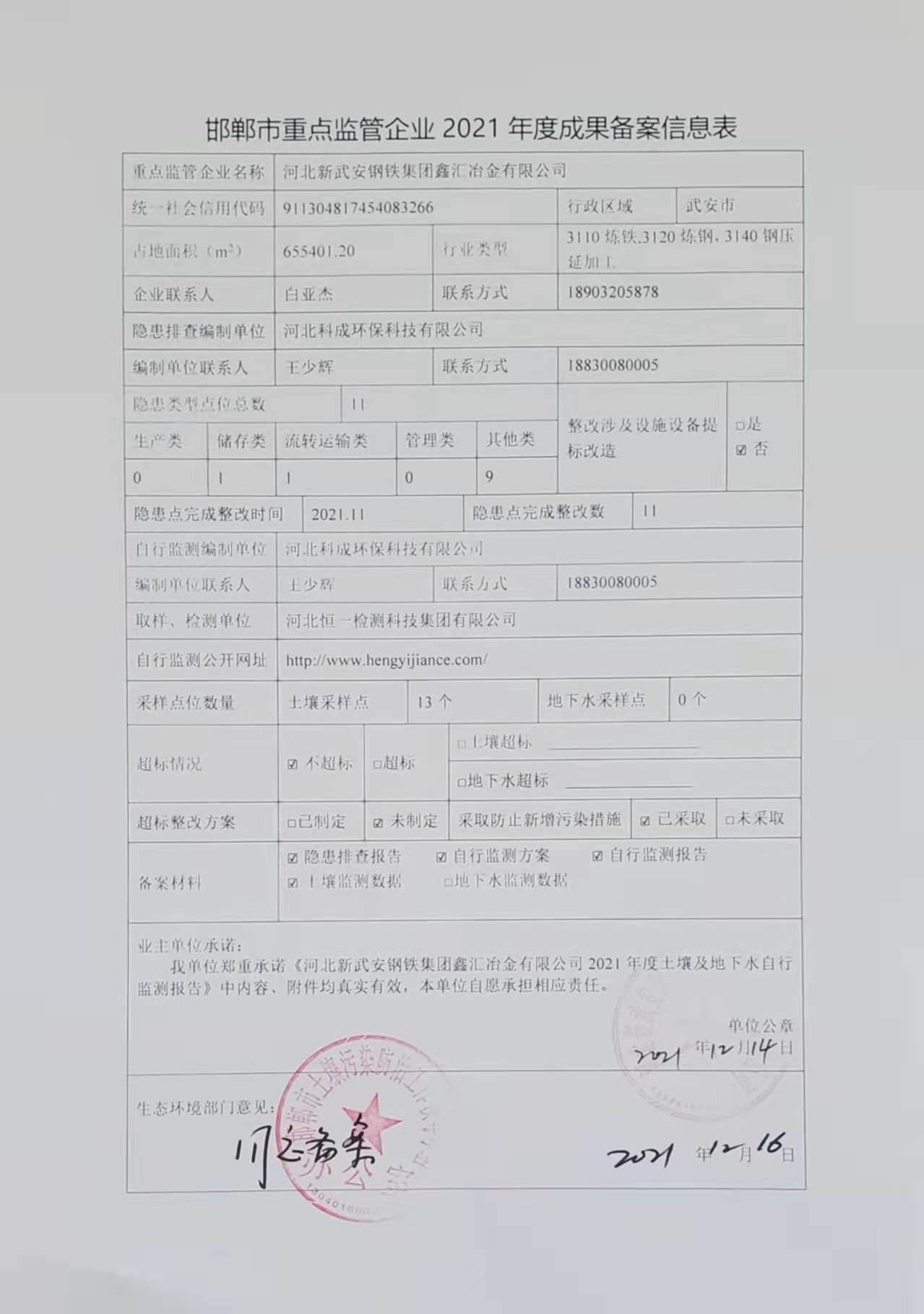 鑫匯有限公司清潔生產信息公示